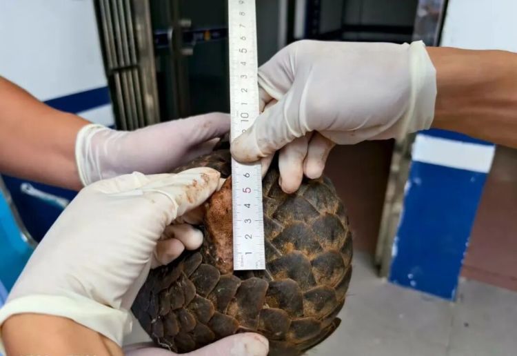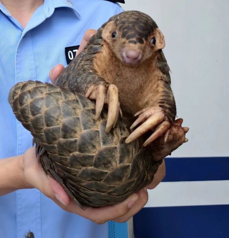 中华穿山甲,国家一级保护动物。体型较小,头身长40至58厘米,尾长25至38厘米,体重3至5千克;脑颅大,头呈圆锥状,上面长着一对小眼睛,一对瓣状而下垂的筒状小耳朵和一个尖的嘴,能自由伸缩舔食。主要栖息于原始和次生热带森林、石灰岩地区、竹林、阔叶林和针叶林、草地以及农田等地带。中华穿山甲生性胆小,是独居动物,除交配期外很少与其他穿山甲一起生活,常常昼伏夜出。