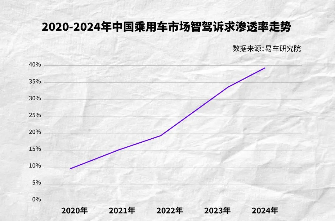 咨询机构 J.D.Power 的报告指出,消费者购车决策中「智能驾驶功能」的权重,从 2020 年的 12%,涨到 2023 年的 35%。易车研究院发布的购车决策洞察报告则显示,2024 年这个数字已接近 40%。